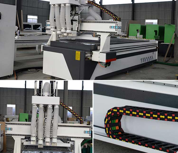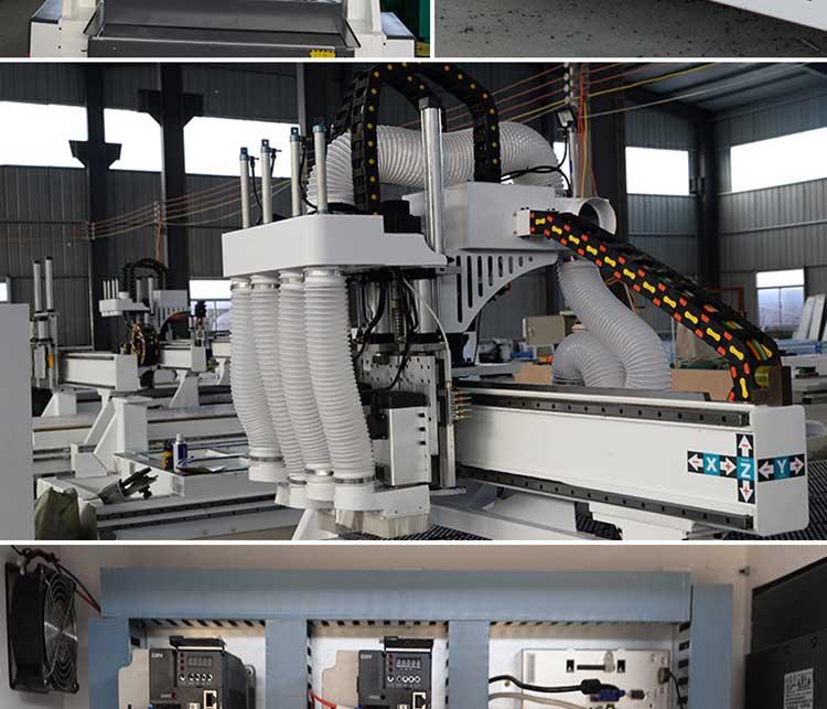 3、吸附台面:很多朋友在购买四工序数控开料机NX-2850-4T时会提到,加工整张板子用吸附台面很好,但有时候加工小材料感觉开吸附泵费电,所以想要吸夹两用的台面,两用的台面吸附效果没有全吸附台面的好,吸附台面是有分区的,非整张的板子可以开单个吸附区域以达到节约用电的目的。