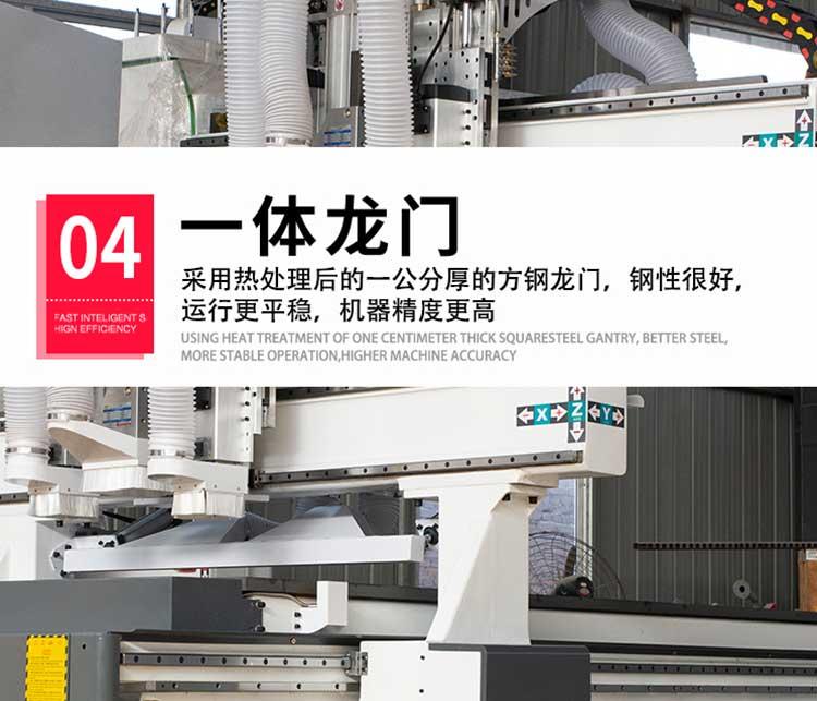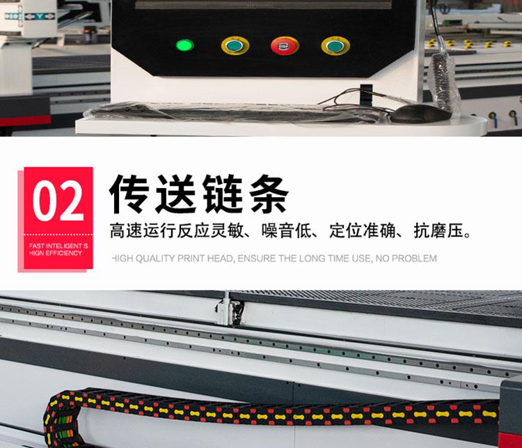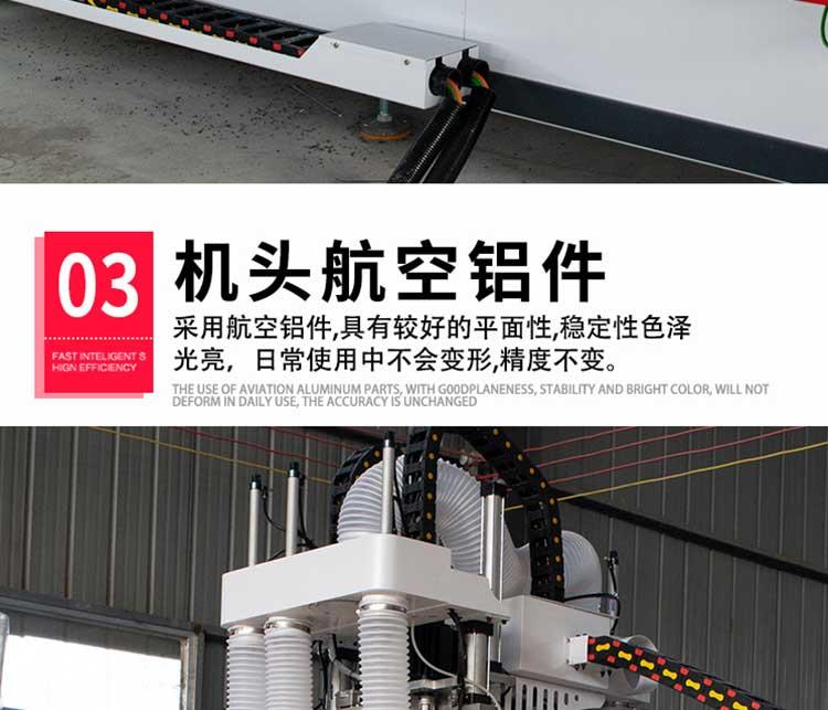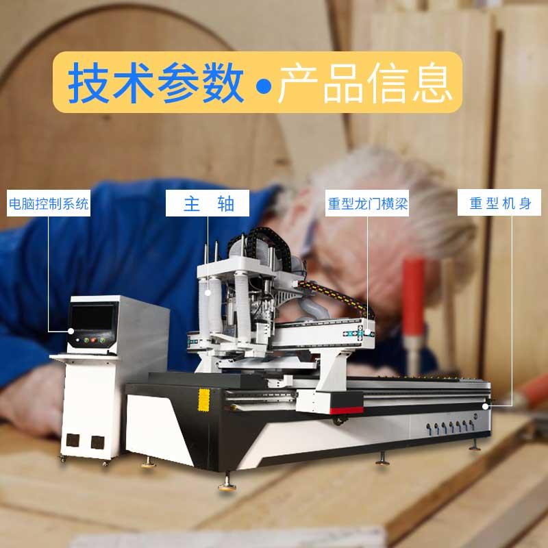 产品简介:数控开料机适用于木门、橱柜门、板式家具等各种木工门板类作业,可以对板材进行切割下料、开槽、排孔、雕刻造型等功能。数控开料机速度非常快,6kw大功率风冷主轴电机,18mm刨花板开料速度可达到20米/分钟。兼容性好,…
