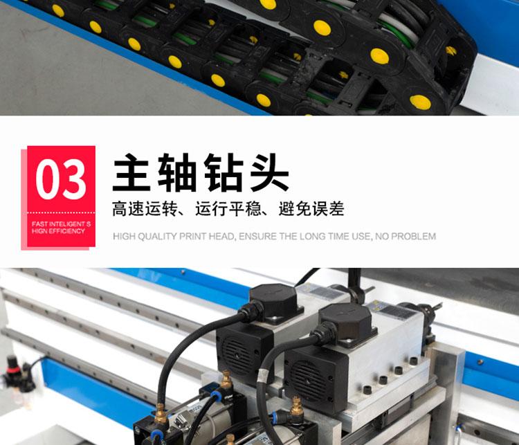 2、可直接实现智能定位准确打孔完成生产,是传统排钻打孔速度的两倍以上,仅需小工即可操作,不需要找专门的排钻师傅,大大节省了人工成本。该设备适用于大中小型板式家具加工厂;