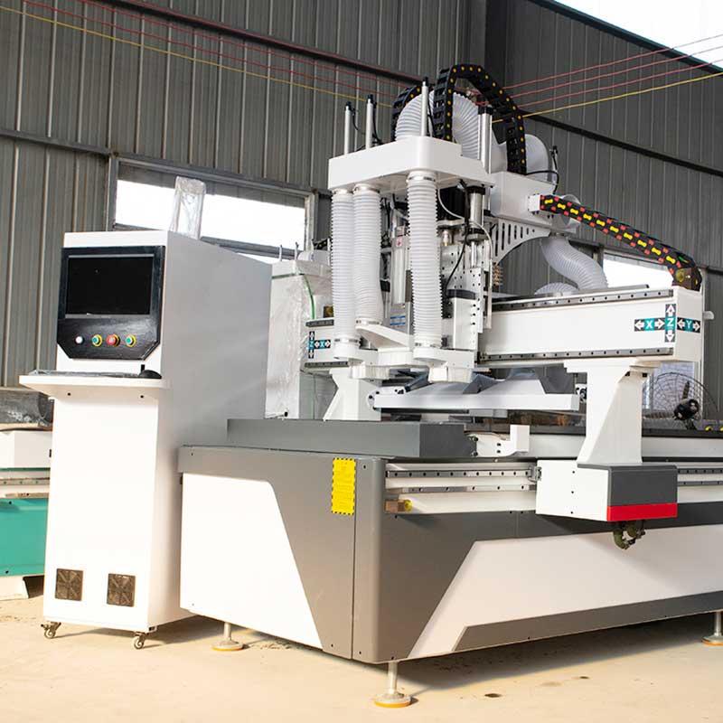 数控开料机车间实拍 文章来源:www.nxmgjx.net 发布时间:2020/5/25 15:00:47 数控开料机适用于木门、橱柜门、板式家具等各种木工门板类作业,可以对板材进行切割下料、开槽、排孔、雕刻造型等功能。数控开料机速度非常快,6kw大功率风冷主轴电机,18mm刨花板开料速度可达到20米/分钟。兼容性好,兼容多种板式家具软件、门板自动优化排版软件。 下一篇:一机多用 上一篇:侧孔机性能稳定